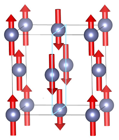For instance, if the atom at [x,y,0] possesses an “up” magnetization, the atom at [x+½,y,½] would possess a down magnetization etc… To describe such a structure, a unit cell with two atoms is sufficient, [0,0,0] and [½,0,½]. The two atoms will be given opposite magnetization with the help of the variable spinat.